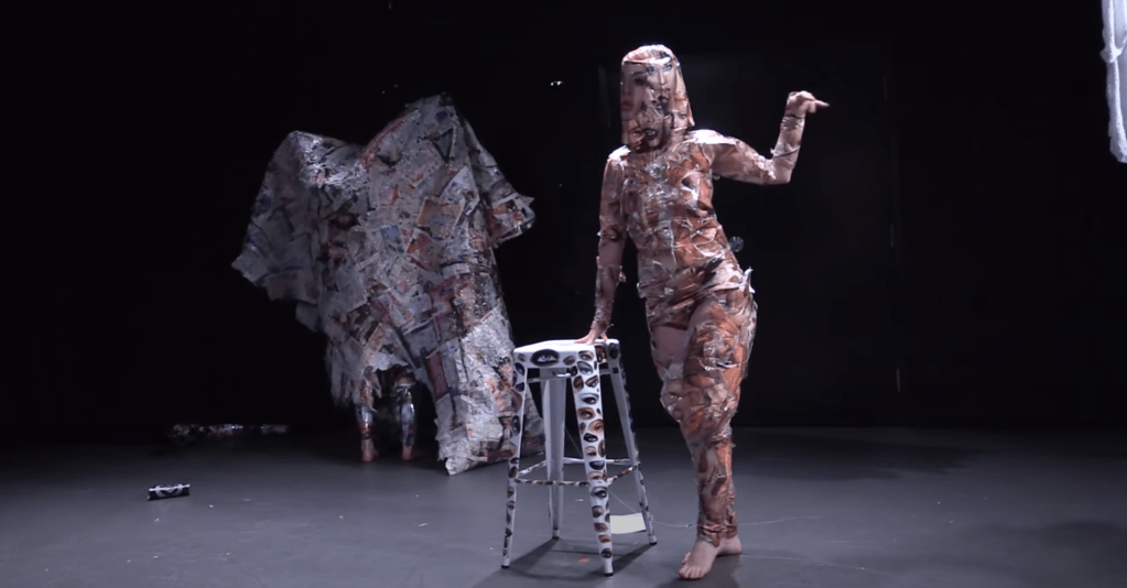 SHINY is a multidisciplinary performance that explores and challenges the beauty standards enforced upon women through mass media. The work explores the masking and erasure of the individual through the bizarre sameness of the beauty standard and magnifies the surreal, the grotesque, the mundane and the violence involved in the quest for ‘perfection’.